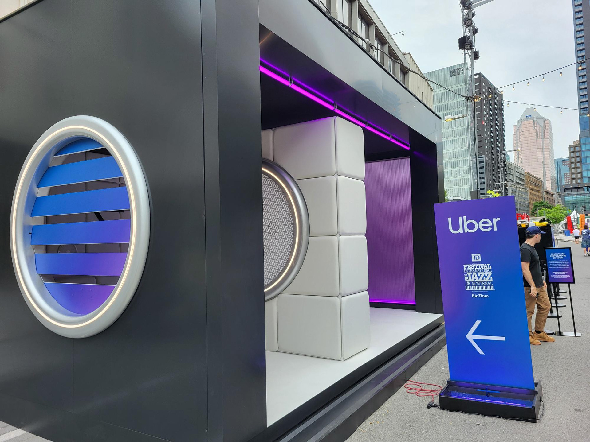 For an Uber brand activation at the Montreal Jazz Festival, our Neon FlexLED was customized to spec and integrated into a custom selfie booth, outlining the structure and backdrops to create a bold, playful glow that encouraged audience engagement and shareable moments.