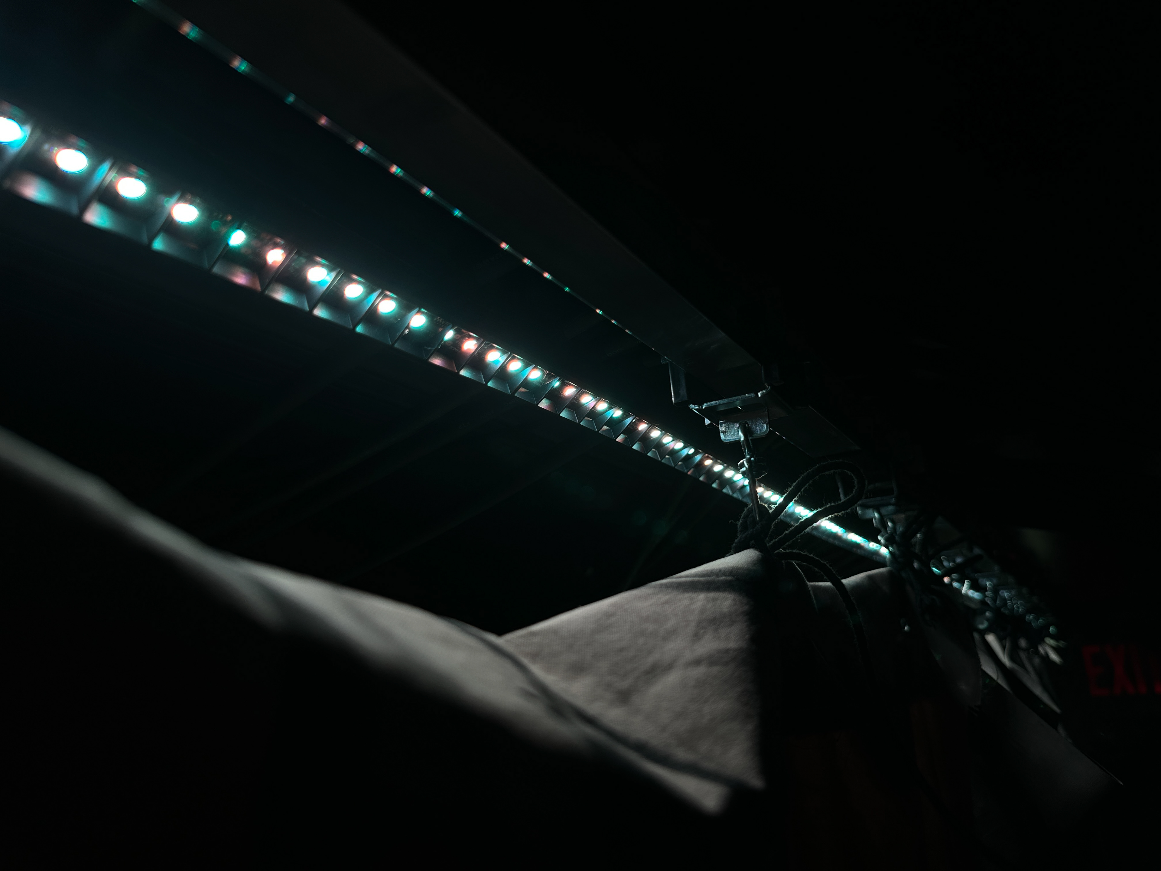 I put the tape in a 3D printed channel I've designed and been making for years. It's super quick to establish, and strikes quickly too. It's also reusable and has interchangeable accessories like top hats, egg crates, and diffusers. I used half hats on the upper led tape so it was invisible to the audience. The lower row of the channel was walked on constantly so it had no half hat. (sad, when we go to Broadway I'll fix that... )