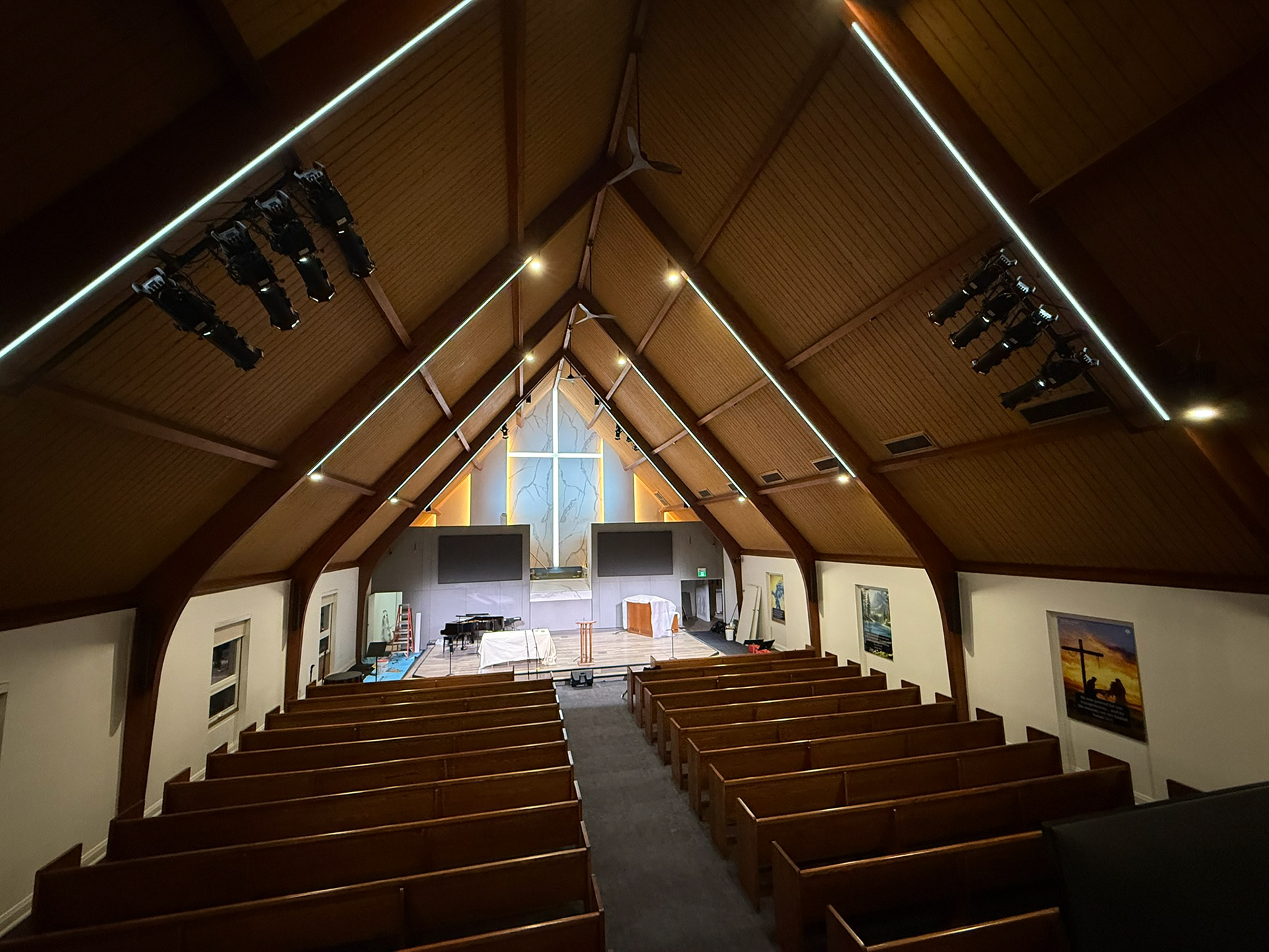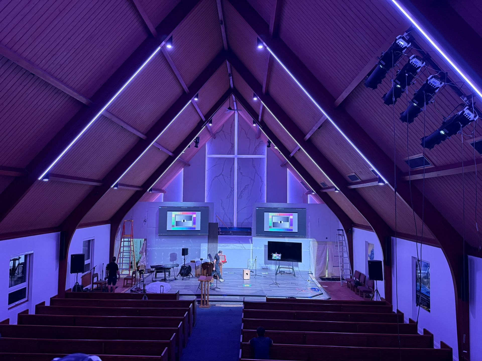 "With the flexibility of the Moss LED strips the church is already thinking of how they could change the colour look for Christmas. The church is happy with the look and the flexibility of colour options it provides. This is just the start as I am sure they will experiment more. It does give the church a very clean and spiritual look. The look is subtle but elegant. Your crews worked very hard on this project and deserve well earned praise for this."